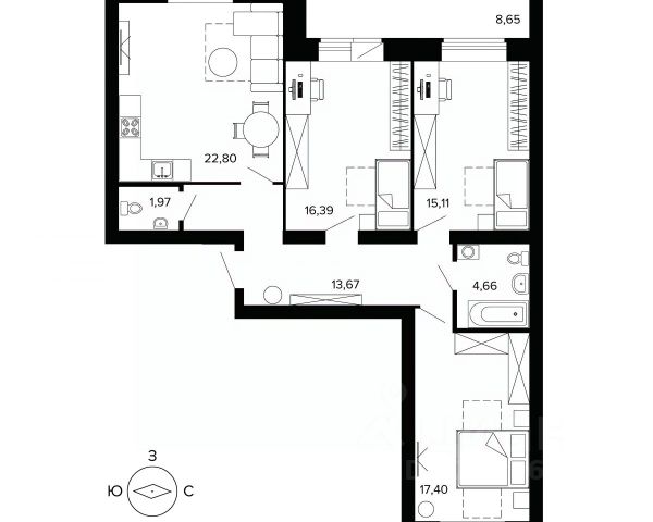 Продаются 4-комнатные апартаменты в сданном доме (1 корпус), срок сдачи: III-кв. 2016, общей площадью 226.3 кв.м., на 48 этаже. Расположение, транспортная доступность