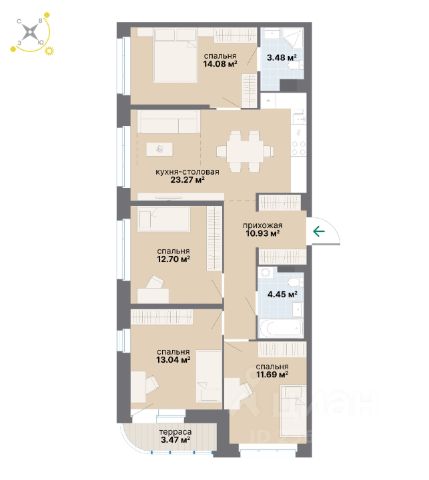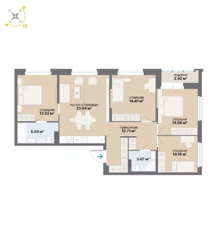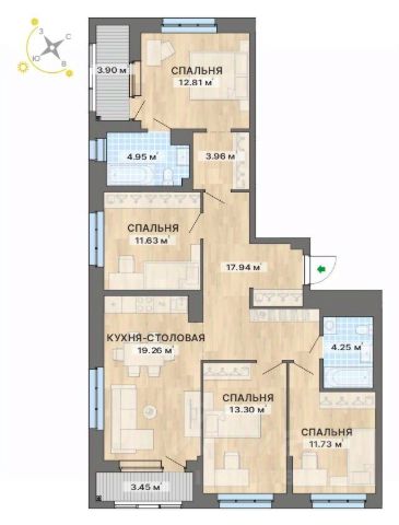 Продаётся 4-комнатная квартира в строящемся доме (18Б), срок сдачи: III-кв. 2026, общей площадью 97.11 кв.м., на 3 этаже. Расположение, транспортная доступность