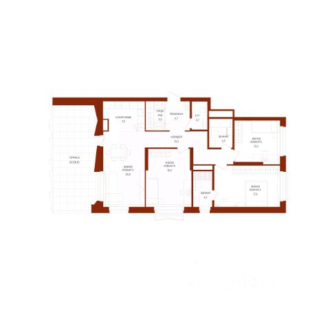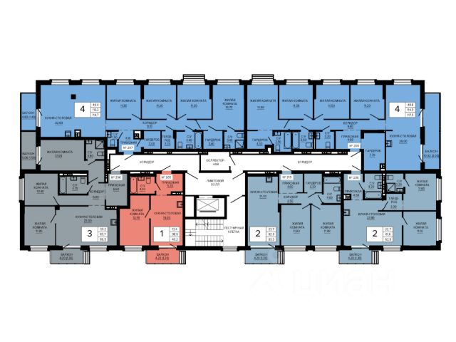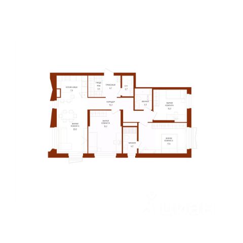 ПЛАНИРОВКА. У квартиры удачная и очень удобная планировка: кухня-гостиная 16,13 м2 с максимальным освещением (3 широкоформатных окна), три спальных комнаты по 11-12 м2, два санузла, ниши под хранение и вместительная прихожая.