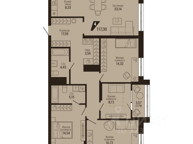 Квартира с кухней-гостиной и четырьмя спальнями в квартале "Депо". Особенности планировки: окна на две стороны, гардеробная, рабочий кабинет, вид во двор, разнесённые спальни, предчистовая отделка, терраса на крыше. квартиры в нашей базе: ДЕП04-Ж2.7.2. Квартал "Депо" расположен в активно развивающейся части Сортировки, на месте, где раньше был завод "Электротранс". Преимущества Сортировки — развитая инфраструктура. В пешей доступности — супермаркеты, остановки городского транспорта, поликлиники, детские сады, школы, гимназии, торговые центры, автоцентры, рынок с большим и доступным по стоимости выбором товаров, парк РЖД и парк с аттракционами Таганская Слобода. Квартал "Депо" расположен в границах улиц Пехотинцев — Таватуйская — Сортировочная — Новая (проектируется). Благоустройство квартала основано на трёх принципах. Первый — особое внимание к воде. Архитекторы Брусники создадут внутри застройки систему дождевых садов, которые будут фильтровать сток (в том числе с крыш зданий) и снижать нагрузку на ливневую канализацию . Второй принцип — разнообразие. Мы высадим на улицах ивы, липы, яблони разных сортов, спиреи, лапчатку и дерен, а во дворах — березы, липы, черёмухи, пузыреплодник, кизильник и манчжурский орех, который в Екатеринбурге почти не представлен. Третий принцип — зонирование. Центральный бульвар мы насытим площадками для игр детей и спокойного отдыха взрослых, на площади перед детским садом расположим окруженные деревьями плэйхабы, летние веранды кафе, открытое пространство с запоминающимся артом. #25C8us