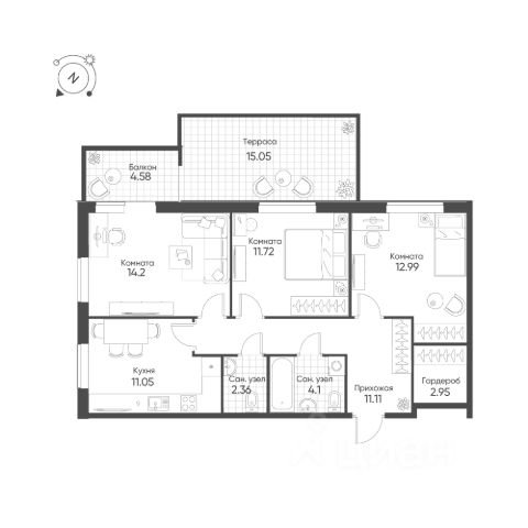 Продаётся 4-комнатная квартира в строящемся доме (ПК 17), срок сдачи: II-кв. 2028, общей площадью 83.04 кв.м., на 5 этаже. Расположение, транспортная доступность Жилой комплекс "Балтым Парк" - это малоэтажный микрорайон, в состав которого входит несколько десятков монолитных, кирпичных и блочных зданий класса "комфорт" высотой от 3 до 5 этажей, а также инфраструктурные объекты. Новостройка занимает территорию 76 гектаров. Микрорайон располагается в северной части города Верхняя Пышма, в поселке Балтым, примерно в 18 километрах от Екатеринбурга, рядом с ЕКАД. Недалеко от комплекса расположена остановка муниципального транспорта "Рябиновая", от которой можно доехать на автобусах как до центра Верхней Пышмы, так и до Екатеринбурга и ближайшей станции метро "Проспект Космонавтов". Путь до Екатеринбурга от "Балтым Парка" займет примерно двадцать минут. Недалеко от комплекса находится еще один ближайший город-спутник Екатеринбурга - Среднеуральск, до которого на общественном транспорте можно доехать за пятнадцать минут. Инфраструктура Собственная инфраструктура микрорайона включает в себя магазины, детские сады и общеобразовательную школу. В поселке Балтым работают несколько продуктовых и хозяйственных магазинов, кафе и школа 9. За десять минут от "Балтым Парка" можно доехать до центральной части Верхней Пышмы, где работают: городская администрация, детский сад 6, детский сад 43 "Дельфин", детские сады 34, 28, 22, общеобразовательные школы 1, 22 и 4, школа олимпийского резерва, музыкальная и художественная школы, центр развития детей "Умничка", Центральная городская больница, пенсионный фонд, супермаркеты "Магнит", "Пятерочка" и "Кировский", магазин сети "1000 мелочей", почта, отделение Сбербанка, городской рынок, центр занятости, торговые центры "Куприт" и "VIP - город", дом культуры "Металлургов", технический университет УГМК (это единственный частный ВУЗ в России, где можно получить высшее техническое образование), филиал Уральского федерального университета. Недалеко находятся главные культурно-спортивные объекты Верхней Пышмы - ледовый дворец им. А. Козицина, дворец спорта УГМК с бассейном, фитнес-залом, боулингом и развлекательным центром, подростковый спортивный клуб, Краеведческий музей, Исторический музей, кинотеатр "Киноград", музей военной техники "Боевая слава Урала", дом культуры "Металлургов". Микрорайон находится в хороших экологических условиях - он построен на окраине города, рядом с лесной зоной и рекой Балтым. Надежность застройщика Возведением микрорайона "Балтым Парк" занималась компания "ЮИТ Уралстрой", входящая в состав финского концерна "ЮИТ", история которого началась еще в 1912 году. Это одна из самых крупных иностранных строительных организаций, работающих в России, филиалы которой находятся в Москве, Санкт-Петербурге, Екатеринбурге, Казани, Тюмени и Ростове-на-Дону. Компания "ЮИТ Уралстрой" начала свою деятельность в 2006 году. Основное направление деятельности предприятия - строительство жилой недвижимости класс