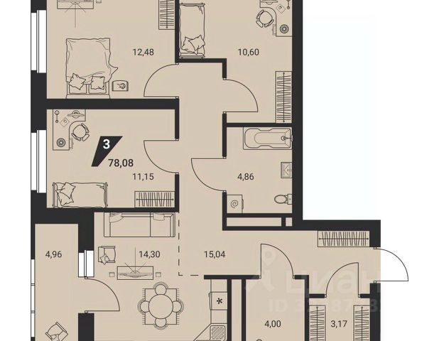 - Площадь 112 кв.м, 4 изолированных комнаты, ванна, два сан/узла, места для