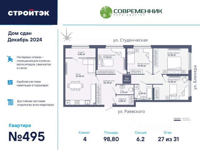 Продаётся 4-комнатная квартира в строящемся доме (ПК 18), срок сдачи: II-кв. 2028, общей площадью 86.5 кв.м., на 2 этаже. Расположение, транспортная доступность