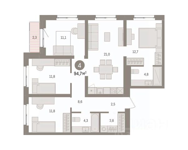 Успейте забронировать на этих условиях! Предложение ограничено! Стоимость квартиры указана со скидкой, ваша экономия составит 540,000 RUB. По всем вопросам звоните в офис продаж, наши менеджеры вам все расскажут! Квартира с кухней-гостиной и четырьмя спальнями в Южных кварталах. Особенности планировки: гардеробная, разнесённые спальни, предчистовая отделка, мастер-спальня, балкон. квартиры в нашей базе: ЮКВ08-Ж1.4.7. Жилой район "Южные кварталы" расположен в границах улиц Московская, Шаумяна и Фурманова, недалеко от автовокзала. До центра города — 10 минут на автомобиле. До станции метро "Чкаловская" — 15 минут пешком. Рядом находится парк, школа олимпийского резерва, несколько гимназий, лицей, детские сады и городская больница. "Южные кварталы" — проект комплексного редевелопмента территории, разработанный архитекторами Брусники совместно с голландскими бюро. Он разделен на несколько частей, каждая из которых имеет свой характер. Вдоль оживленной Московской появятся более высокие и крупные дома. Профиль спокойной и очень зелёной Шаумяна сформируют кварталы среднеи этажности. В глубине района мы расположим урбан-виллы, чуть дальше — башни-доминанты. Последние будут играть роль визуальных акцентов и впоследствии станут символами этого места. Ближе к Фурманова мы организуем образовательный кластер. Его составят два детских сада на 300 и 325 мест и школа, рассчитанная на 1500 учеников. Школа будет иметь спортивную зону, которая станет доступна и жителям района. Свяжет территорию сеть общественных пространств. Её центральным звеном станет зелёный променад, проходящий сквозь весь район и соединяющий его с парком 50-летия ВЛКСМ. #2mVC99