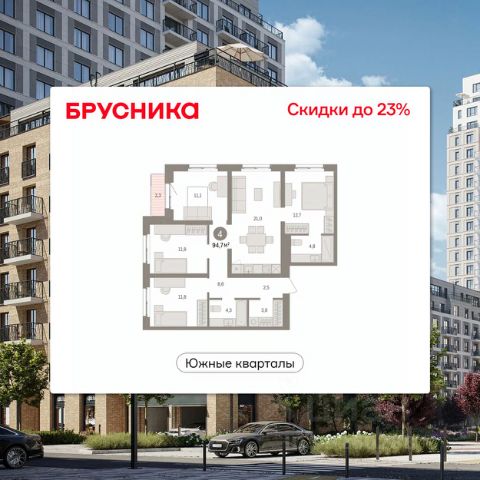 Успейте забронировать по этой цене, предложение ограничено! Стоимость квартиры указана со скидкой, ваша экономия составит 630,000 руб. Звоните, наши менеджеры вам все расскажут. Квартира с кухней-гостиной и четырьмя спальнями в Южных кварталах. Особенности планировки: второй санузел, ипотека 10%, окно в коридоре, постирочная, предчистовая отделка, терраса, терраса на крыше. квартиры в нашей базе: ЮК04-А1-7-7.7.2. Жилой район "Южные кварталы" расположен в границах улиц Московская, Шаумяна и Фурманова, недалеко от автовокзала. До центра города — 10 минут на автомобиле. До станции метро "Чкаловская" — 15 минут пешком. Рядом находится парк, школа олимпийского резерва, несколько гимназий, лицей, детские сады и городская больница. "Южные кварталы" — проект комплексного редевелопмента территории, разработанный архитекторами Брусники совместно с голландскими бюро. Он разделен на несколько частей, каждая из которых имеет свой характер. Вдоль оживленной Московской появятся более высокие и крупные дома. Профиль спокойной и очень зелёной Шаумяна сформируют кварталы среднеи этажности. В глубине района мы расположим урбан-виллы, чуть дальше — башни-доминанты. Последние будут играть роль визуальных акцентов и впоследствии станут символами этого места. Ближе к Фурманова мы организуем образовательный кластер. Его составят два детских сада на 300 и 325 мест и школа, рассчитанная на 1500 учеников. Школа будет иметь спортивную зону, которая станет доступна и жителям района. Свяжет территорию сеть общественных пространств. Её центральным звеном станет зелёный променад, проходящий сквозь весь район и соединяющий его с парком 50-летия ВЛКСМ. #zszm5I
