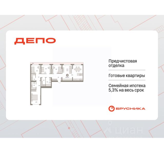 Квартира с кухней-гостиной и четырьмя спальнями в квартале "Депо". Особенности планировки: гардеробная, рабочий кабинет, разнесённые спальни, предчистовая отделка, постирочная, балкон. квартиры в нашей базе: ДЕП04-Ж4.2.8. Квартал "Депо" расположен в активно развивающейся части Сортировки, на месте, где раньше был завод "Электротранс". Преимущества Сортировки — развитая инфраструктура. В пешей доступности — супермаркеты, остановки городского транспорта, поликлиники, детские сады, школы, гимназии, торговые центры, автоцентры, рынок с большим и доступным по стоимости выбором товаров, парк РЖД и парк с аттракционами Таганская Слобода. Квартал "Депо" расположен в границах улиц Пехотинцев — Таватуйская — Сортировочная — Новая (проектируется). Благоустройство квартала основано на трёх принципах. Первый — особое внимание к воде. Архитекторы Брусники создадут внутри застройки систему дождевых садов, которые будут фильтровать сток (в том числе с крыш зданий) и снижать нагрузку на ливневую канализацию . Второй принцип — разнообразие. Мы высадим на улицах ивы, липы, яблони разных сортов, спиреи, лапчатку и дерен, а во дворах — березы, липы, черёмухи, пузыреплодник, кизильник и манчжурский орех, который в Екатеринбурге почти не представлен. Третий принцип — зонирование. Центральный бульвар мы насытим площадками для игр детей и спокойного отдыха взрослых, на площади перед детским садом расположим окруженные деревьями плэйхабы, летние веранды кафе, открытое пространство с запоминающимся артом. #ZSCV7U
