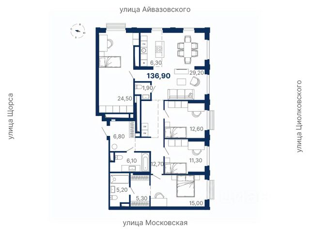 • ✅ Минимальная площадь: 136,9 м²