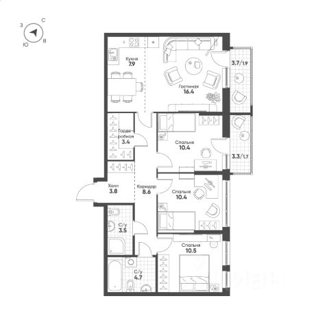 И изюминка на тортик: в квартире есть просторная гардеробная (почти 7 кв.м.). Её можно использовать как гардеробную, можно место для хранения или оборудовать как небольшую мастерскую для Вашего творчества.