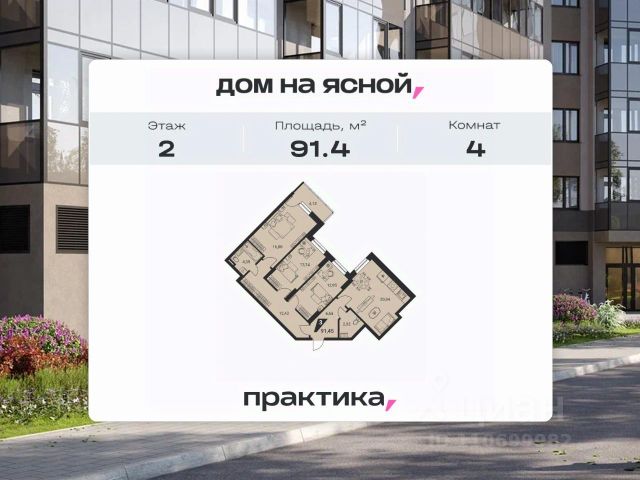 Код объекта: 1763738. Продается (переуступка от физлица) 4-комнатная квартира площадью 81.48 кв.м. в жилом квартале "Первый Академ". Функциональная планировка, окна квартиры выходят на три разные стороны, отделка white box. Срок передачи ключей до 30 сентября 2026 года. Дом расположен внутри жилого квартала . На территории квартала предусмотрено множество удобств для жильцов, включая комфортные холлы в стиле ар-деко, видеонаблюдение 24/7, двор без машин, кладовые и паркинги с выходом из лифта, магазины и полезные сервисы на первых этажах. В шаговой доступности расположены торговые и спортивные объекты, медицинские и образовательные учреждения. Звоните, отвечу на все вопросы! Продается 4-комнатная квартира в Екатеринбурге.