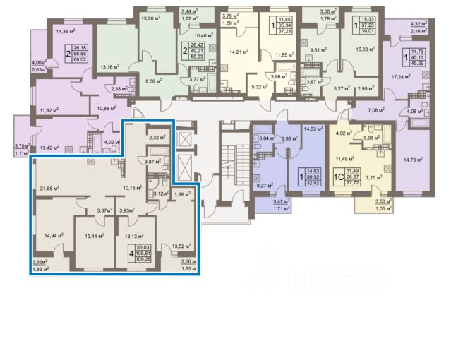Апартаменты 240 в подъезде 1. Новый архитектурный символ центра Екатеринбурга: две башни с жилыми апартаментами для тех, кто привык жить ярко. На выбор покупателей — апартаменты площадью от 48,5 до 131 м², в том числе свободной планировки. Из окон открываются панорамные виды на Екатеринбург-Сити и набережную Городского пруда. Включенные в проект решения — двор-сад на крыше стилобата или этаж сервисов для резидентов! — гарантируют высочайший уровень комфорта.