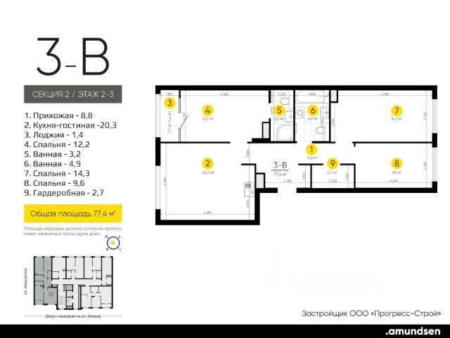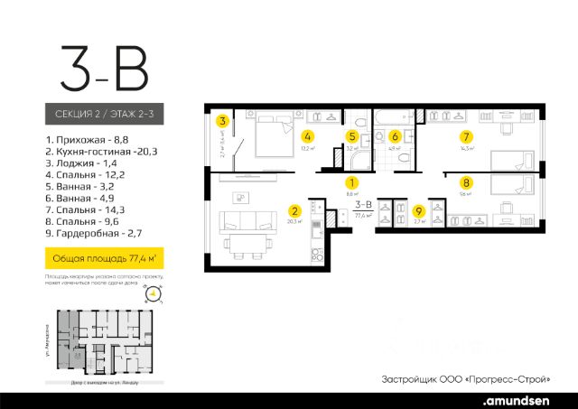 Жилой квартал "Amundsen" - для себя, для семьи, для жизни и развития. Авторская концепция проекта эффектно выделяется в 3 особенностях комплекса: фасады, двор и места общего пользования. AMUNDSEN ПРОЕКТ С ХАРАКТЕРОМ ВЕЛИКОГО ПЕРВООТКРЫВАТЕЛЯ. 4 СЕЗОНА: Двор-трансформер позволяет активно использовать все площадки круглый год. В холодное время года санки, коньки и снежные бои за главную башню. В теплое время источник наполняет двор водой и прохладой. Работают площадки для активных игр и спокойного отдыха. 6 ДЕТСКИХ ПЛОЩАДОК: Мы разделили площадки по возрастным группам для малышей и детей постарше. Качели, аттракционы, водные и активные игры созданы, чтобы познавать мир. 5 ПЛОЩАДОК ДЛЯ СПОКОЙНОГО ОТДЫХА: За счет игры с ландшафтом мы создали приватные зоны, украсили пространство разнотравьем, оживили двор источником. Шум воды, лежаки, беседки, парк места, где ты почувствуешь течение жизни. AMUNDSEN ИДЕАЛЬНОЕ МЕСТО ДЛЯ ЖИЗНИ И РАЗВИТИЯ. - Жилой квартал расположен в экологически чистом районе в окружении двух лесных массивов. - Новые современные школы и детские сады. Спортивный кластер для занятий. - Главный холл пространство для всех. Для самых маленьких игры, для взрослых кафе с ярким дизайном, тихий коворкинг, места для отдыха и светлый, просторный атриум. - Детские площадки "будущего" с оригинальным подходом к созданию игровой среды. - Безопасная территория. Круглосуточная охрана, видеонаблюдение 24/7, электронная система доступа, двор без машин. Застройщик ООО СЗ "Прогресс-Строй", проектная декларация на сайте наш.дом.рф