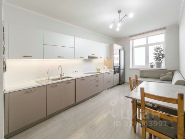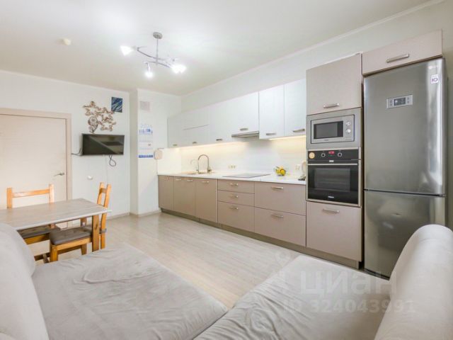 Кухня- гостиная имеет увеличенную площадь и оборудована всем необходимым: кухонный гарнитур с встроенной техникой : посудомоечная машина ( Bosch) ,микроволновая печь( Hansa) и духовой шкаф (Haier ) ,холодильник фирмы (Haier ),кондиционер ( Hisense) а также мебель в зоне гостиной диван ,стол и стулья и большой современный телевизор. .