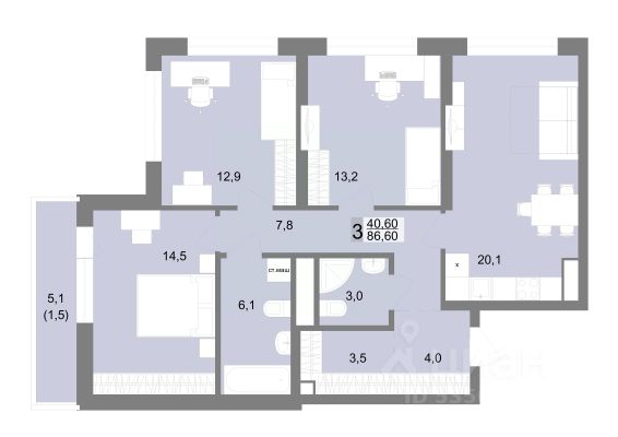 Продается 3-ая квартира, в ЖК Repin Towers, в доме 3, в 12-ти этажной секции. Ввод в эксплуатацию первая половина 2026 г. (возможен досрочный ввод).