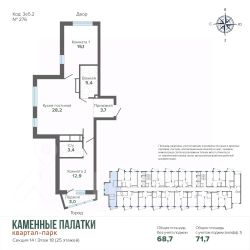 Продается Двухкомнатная квартира в одном из самых экологичных районов города Екатеринбург. Квартира находится 1 на этаже, площадью 71,9 кв.м. Срок сдачи: 4 квартал 2025 года. Подробнее о Жилом комплексе "Гранит": 2 современных жилых корпуса комфорт-класса переменной этажности, расположены рядом с Шарташским лесопарком и озером Шарташ. Преимущества: Местоположение: уникальное местоположение позволяет жильцам добраться до УРФУ всего за 20 минут пешком. Наряду с тем, прямо из собственного двора можно попасть в парк "Каменные палатки", который является природным памятником областного значения. Транспортная доступность обеспечивается выездами как на улицу Высоцкого, откуда можно добраться прямо (в прямом смысле, без единого поворота) в центр города, так и на Егоршинский подход скоростную магистраль связывающую все районы мегаполиса. Планировки квартир: на любой вкус. От компактных студий до семейных трех и четырехкомнатных квартир. Удобные однокомнатные квартиры с лоджиями и большими кухнями-гостиными. Разноплановые двухкомнатные квартиры от миниатюрных площадью 44м2 до просторных 98м2 с огромной террасой. Большие трехкомнатные квартиры с двумя санузлами и мастер-спальнями, широкими прихожими для всех семьи. Редкие для современных новостроек четырехкомнатные квартиры для больших дружных семей. Пространство всех квартир увеличивают окна высотой 1,7 м и выходы на лоджию со сплошным остеклением. Отделка: все квартиры сдаются с отделкой White Box, второе название предчистовая отделка. Преимуществом такого вида отделки является то, что все наиболее сложные черновые работы мы берем на себя, а вам останется провести "поверхностный ремонт": постелить полы, покрасить стены, установить сантехнику, розетки и расставить мебель. Этот вид отделки экономит ваше время и средства, но в тоже время дает возможность сделать всё "по-своему" с творческим подходом к заселению в новый дом. Двор для жизни: мы подошли очень внимательно к благоустройству двора, уделив внимание озеленению и созданию зон для всех: от малышей до старшего поколения, чтобы всем было уютно проводить время в родном дворе. Во дворе предусмотрены игровые площадки для детей разных возрастов, зона воркаут, площадки для занятий спортом и для спокойного отдыха. Паркинг: для размещения автомобилей предусмотрен одноэтажный паркинг, расположенный в стилобатной части комплекса. Входы в паркинг организованы прямо из домов.