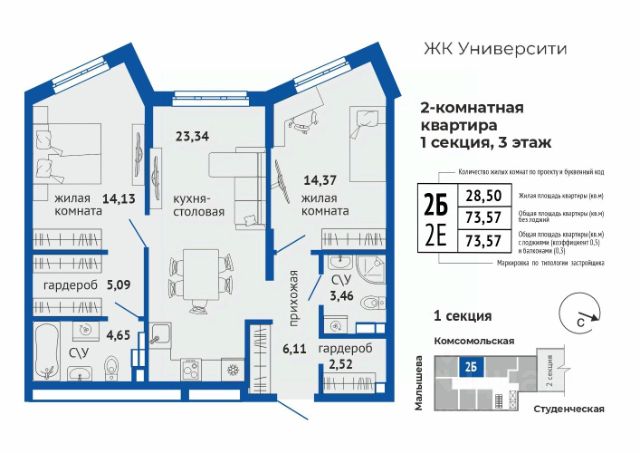 Дом 3 Ввод в эксплуатацию: IV квартал 2026 года. Класс дома: комфорт. Отделка: чистовая (под ключ) включена в стоимость. Скидка при выборе предчистовой отделки. Размер скидки уточняйте в отделе продаж. Вид из окон: на дендропарк, центр города и озеро Шарташ. Б.26 дом на высоте современный жилой комплекс в районе Втузгородок (пересечении улиц Блюхера и Мира). До центра города 20 минут ходьбы. В шаговой доступности находятся: ВУЗы (Уральский федеральный университет, Юридическая академия) Дендрологический парк. школы (Гимназии 35, 47, 108, Лицей 130) детские сады ( 421, 423, 332, 352) остановки общественного транспорта (ул. Мира, ул. Блюхера, ТК Современник). торговые центры (Апельсин, Современник, Галерея 11, Blissco молл) Современная архитектура. Долговечные фасады из навесных панелей и штукатурки, увеличенные окна и французские балконы формируют уникальный узнаваемый образ. Ночная подсветка выделяет дом среди застройки района и подчеркивает выразительность его силуэта. Двор без машин. Игровые площадки для детей разных возрастов, места отдыха и занятий спортом для взрослых не соседствуют с парковкой. Динопарк. Игровые зоны созданы в стиле таинственного мира динозавров. Парк во дворе. Многоуровневое озеленение c прогулочными дорожками, беседками и качелями. Три уровня безопасности. Контроль доступа по карте жителя, эффективная система видеонаблюдения, консьерж-сервис. Дизайнерские холлы. Парадный холл с остеклением в пол, зонами ожидания, гостевым санузлом и санузлом для мытья лап животным, а также колес велосипедов и колясок. Сервисная компания от застройщика. Обслуживанием дома будет заниматься профессиональная команда. Строительные и технические преимущества. Индивидуальный тепловой пункт: снижает затраты на отопление. Система очистки улучшит качество воды в доме. Пятикамерные окна задержат шумы и холод. Клапан вентиляции позволит проветрить комнату, не устраивая сквозняк. Горизонтальная разводка отопления: трубы спрятаны в полу. Счетчики с телеметрией. Отдельный счетчик на отопление у каждой квартиры. Отведение конденсата для кондиционеров. Высокий уровень шумоизоляции у стены квартир. Бесшумные, скоростные лифты. Дополнительно можно заказать кухню и ванную комнату, чтобы не тратить время и силы на ремонт при переезде. В улучшенной отделке санузла. предусмотрено все: матовая плитка, натяжной потолок, теплый пол, современная сантехника, зеркало с подсветкой, мебель и освещение. Это стильное и функциональное пространство. В готовой кухне мы предусмотрели все необходимое для эргономичного и функционального пространства. Кухонный гарнитур с надежной фурнитурой и встроенная техника, которая включает в себя холодильник, духовой шкаф, варочная панель, вытяжка, посудомоечная машина. Для микроволновки предусмотрена отдельная ниша. На выбор — три стильных решения, подходящих под разные вкусы и сценарии интерьера. От теплой классики до сдержанного минимализма: Кашемир, Серый шелк, Бланж. Кухня и санузел могут быть включены в ипотеку