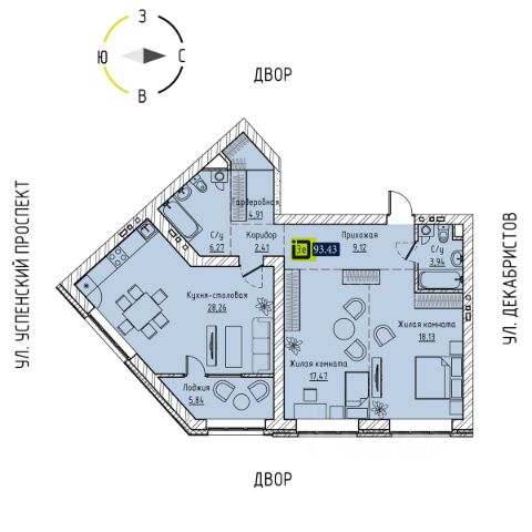Продаётся 3-комнатная квартира в строящемся доме (Дом 1.2), срок сдачи: III-кв. 2027, общей площадью 93.43 кв.м., на 6 этаже. Новый жилой комплекс "Brick House" от застройщика "ГК Интег Девелопмент" расположен по адресу: г. Верхняя Пышма, Успенский проспект.