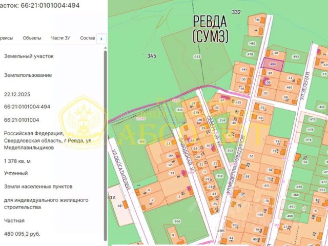 Арт. 129945923 Продаётся замечательный земельный участок ИЖС 10,3 соток , в экологически чистом месте г. Ревда .Участок расположен в 45 км от г. Екатеринбург. Возможно приобретение участка в ипотеку без первоначального взноса! А также в ипотеку со ставкой от 6% на дальнейшее строительство и благоустройство участка! Кадастровый номер:66:21:0101041:611 Участок ровной прямоугольной формы. Столб с электричеством на участке, улица газифицирована. Вся инфраструктура развита прямо в городе: школы, детские сады, дом культуры, продуктовые магазины , больницы и т.д. Собственник , участок полностью готов к продаже , успевайте! Рассмотрим все варианты оплаты: ипотека, материнский капитал, наличные средства. Если у Вас не одобрена ипотека, обращаетесь, обязательно поможем! Также рассмотрим ОБМЕН на любую вашу недвижимость
