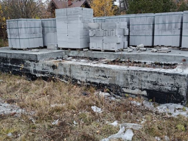 Дом из бетонных блоков, 2 этажа. Первый этаж обустроен (комната 22м2), второй - нет. Все окна на первом этаже пластиковые.