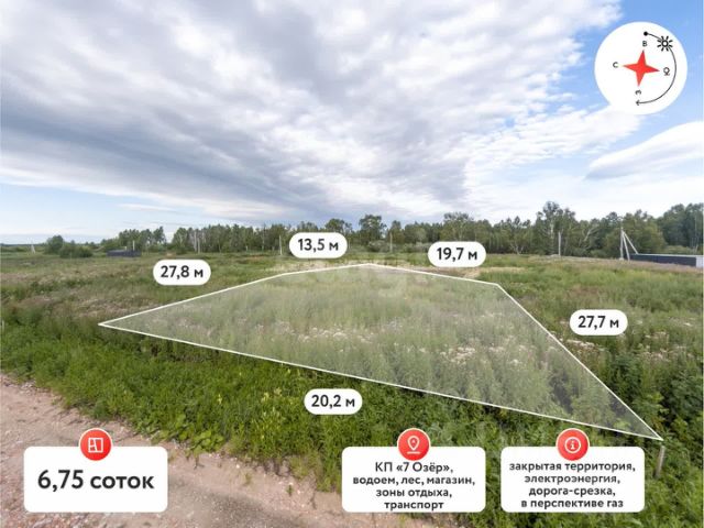Покупай сейчас - плати потом! На данный объект доступна рассрочка на выгодных условиях Земельный участок площадью 6,75 соток правильной формы с выходом к водоему и собственным пляжем расположен в бурно развивающемся коттеджном поселке закрытого типа "7 Озер". Поселок обеспечен круглосуточным видеонаблюдением и контролируемым въездом через шлагбаум, что гарантирует безопасность и приватность. По пути в поселок расположены магазины, решающие вопросы повседневного обеспечения. От города до поселка отличная асфальтированная дорога! Подъездные дороги к участкам выполнены в виде асфальтовой срезки, обеспечивая удобный доступ в любое время года. Участок подключен к электричеству мощностью 15 кВт, газификация поселка запланирована в ближайшей перспективе, что делает его привлекательным для круглогодичного проживания. Управление территорией осуществляет СНТ "Строитель", что гарантирует порядок и своевременное обслуживание инфраструктуры. Ключевое преимущество участка — близость к благоустроенной зоне отдыха с водоемом размером 6030 метров, оборудованным пляжем, зоной барбекю и беседками. Для активного отдыха предусмотрены воркаут-зона, спортивная и детская площадки, что делает поселок идеальным местом для семейного проживания или сезонного отдыха. Участок подходит как для строительства дачи или капитального дома, так и для коммерческого использования — например, создания гостевого комплекса или базы отдыха. Расположение поселка сочетает преимущества загородной жизни с доступностью транспортной инфраструктуры: до города можно добраться на личном транспорте за 2025 минут. Юридическая чистота сделки гарантируется, возможен показ в удобное время. Участок представляет собой выгодное вложение в недвижимость с потенциалом роста стоимости благодаря развивающейся инфраструктуре и перспективам газификации. Хорошая транспортная доступность, зеленый район, развитая инфраструктура, свободная продажа, один хозяин, сделка сегодня, подходит под семейную ипотеку! МЫ ГАРАНТИРУЕМ ФИНАНСОВУЮ БЕЗОПАСНОСТЬ ДЛЯ НАШИХ КЛИЕНТОВ. Код пользователя: 183569 Номер в базе: 8200662