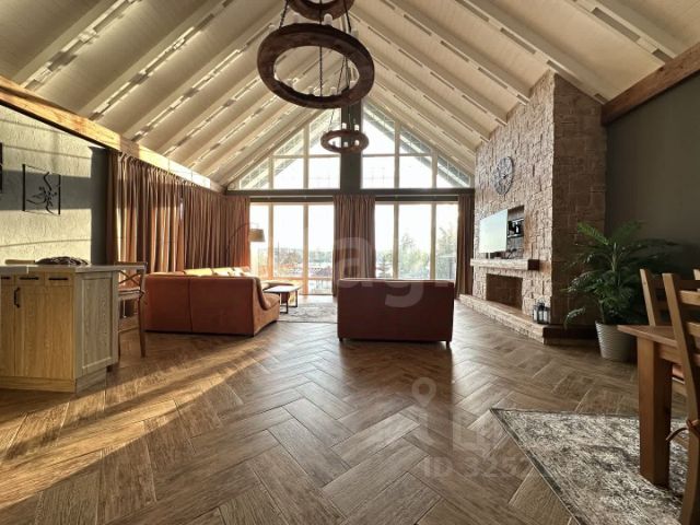 - на первом этаже расположены: функциональная вместительная прихожая 12,8 кв.м., кухня 15,8 кв.м., гостиная 26, 3 кв.м. и просторная комната для гостей или одна из спальных комнат дома 32, 7 кв.м., гостевой санузел. Предусмотрен самостоятельный выход в теплый гараж, оснащенный смотровой ямой.