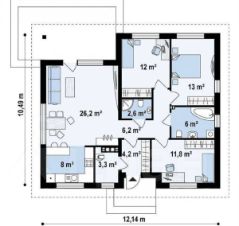 В доме 3 функциональные комнаты (Спальня, детская и кабинет) и кухня гостинная 36,5 м, которую легко можно зонировать либо превратить в кухню-столовую и 4 тую комнату.