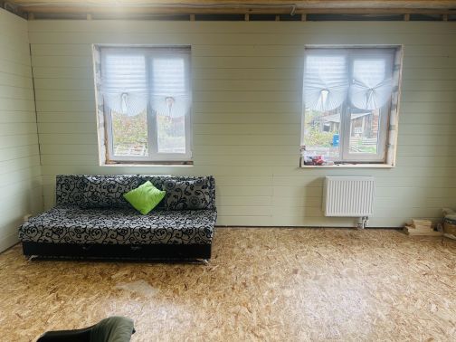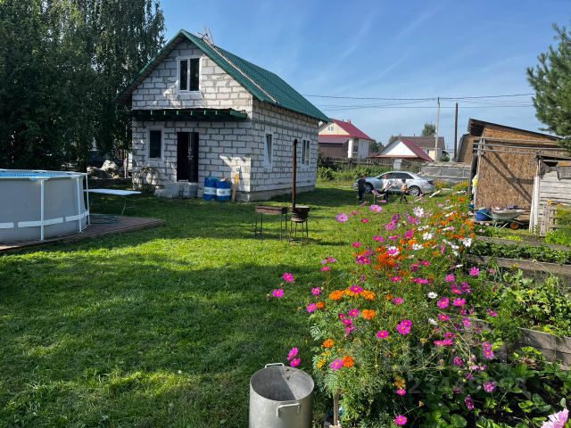 Отличный, комфортный дом для проживания или под дачу! О доме: Каркасный дом, бетонно-заливных сваях (зарегистрирован, есть тех.план). Электричество 15 кВт. Водопровод летний скважина 35м. Каркас 100 мм., стены 100 мм., пол и потолки 150 мм. Отопление печное (галанка каминного типа). На 1 этаже прихожая отделена от большой комнаты, совмещенной с кухней. Кухонный гарнитур, встроенные электроплита, духовка и микроволновая печь. На 2 этаже 3 комнаты и эркер с окнами на 3 окна (стороны). УЧАСТОК: Правильной формы, разработан, границы установлены, огорожен забором, установлено видеонаблюдение. На участке есть баня (парилка и мойка каждая со своим входом, вход с предбанника), беседка и хоз. блок под одной крышей длиной 10,5 метров. Над баней мансардная надстройка (большая комната 5*4,5 м. с окном). На участке имеются: овощная яма в виде пластикового погреба, 2 теплицы (6 метровые), мангальная зона, уличный туалет. Имеются наслаждения: яблоня, кусты смородины, ирга, вишня, слива, малина, клубника. ПРЕИМУЩЕСТВА: Вокруг дома, стоянка и дорожки ко всем постройкам выложены тротуарной плиткой. На участке можно поставить 3 машины. Есть большая площадка для бассейна и качели. Напротив участка есть садовая гостевая парковка. В 15 мин. ходьбы посёлок с множеством магазинов, почтой и аптеками. От посёлка до города можно добраться на маршрутке и электричке, которые ходят по расписанию. На машине путь занимает 30-40 минут по хорошей 2 полосой трассе. Уникальный дом где всё с заботой продумано до мелочей! Звоните, приезжайте на просмотр!