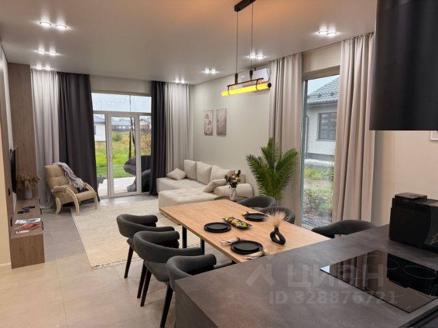 Площадь основного (отапливаемого) дома 248,8 кв.м., общая площадь с учетом гаража и др. помещений около 420 кв.м. Кухня 18 кв.м, гостиная 27 кв.м., 3 спальни, 2 детские, кабинет, 3 удобных с/у с окнами (2 с ваннами), 2 гардеробные, котельная, веранды.