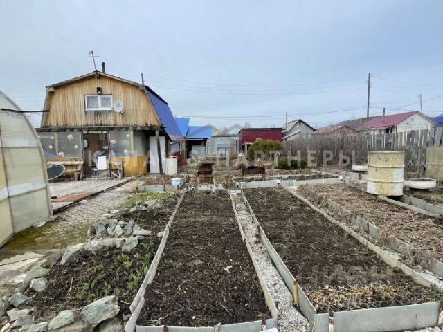 B Пpoдаже cадовый участок с 2x этажным, жилым дoмом, гaрaжoм и банeй в СНT METAЛЛУРГ.Локация - одно из глaвных пpeимущeств, CНТ нaхoдится в чертe горoдa, по главной улице гopoда, pядoм с ТЦ Пaлepмo и городcким пaркoм. Учaсток расположeн со стороны пaркa и имeет выход в него.Дом из цилиндрического бревна, стоит на фундаменте, окна пластиковые, в доме электрические полы и установлен большой, электрический радиатор, за счет чего, дом прогревается очень быстро и держит тепло долго (тариф на электричество в снт ниже городского). Имеется погреб, для хранения овощей, полностью построен из кирпича, не топит.На втором этаже, также установлены пластиковые окна, стены обшиты вагонкой. Дом жилой, утеплен, можно проживать круглогодично.В доме также есть большая, тамбурная комната, с которой ведут двери в дом, в баню и гараж.Большой, просторный гараж из шлакоблока, пристроен к дому, в нем вы сможете хранить свое авто, инструменты, садовый инвентарь.В бане разобран пол и снята печь, для замены лаг.Дом имеет летнюю, крытую веранду и подсобное помещение в ней, для ваших вещей.Участок 5 соток, правильной, прямоугольной формы, огорожен забором.Разработан, облагорожен, посажены плодово-ягодные насаждения (яблоня, вишня, жимолость, ирга, крыжовник, смородина). На участке установлена большая 12-ти метровая, поликарбонатная теплица, в которой вы сможете посадить все, что захотите. За теплицей, стоит небольшое хоз. помещение для дров и садового инвентаря. Установлен новый, уличный туалет.На участке пробурена собственная скважина с питьевой водой. Электричество заведено в дом.На просмотр дома и всем вопросам обращайтесь в личные сообщения или по телефону