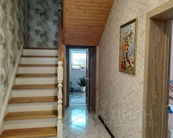 Между первым и цокольным этажом лестница, под которой расположен газовый котел.