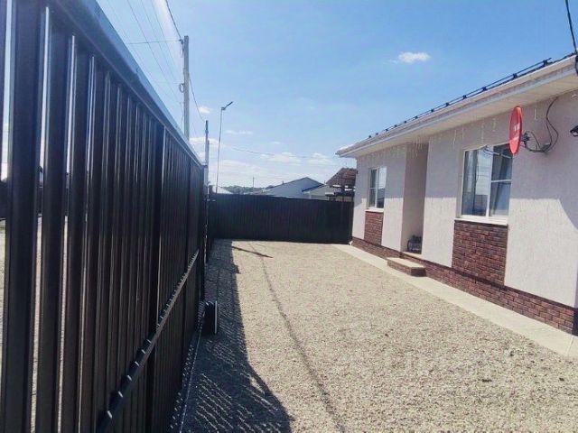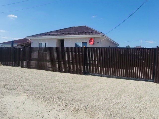Участок по периметру закрыт забором из металлического профлиста, установлены откатные ворота с электроприводом, открываются с пульта. Так же предусмотрены распашные ворота под второй заезд.