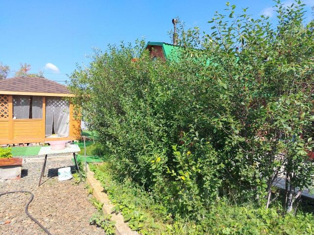 На участке расположено несколько цветников с многолетниками, грядки с клубникой, две поликарбонатные теплицы (6*3 м и 2*3 м), беседка 3*4 м, мангал, плодоносящие яблони, вишни, груша, несколько кустов смородины, малина, сирень. Площадка перед домом, зона для отдыха и дорожки выложены плиткой. Перед домом место для парковки двух авто.