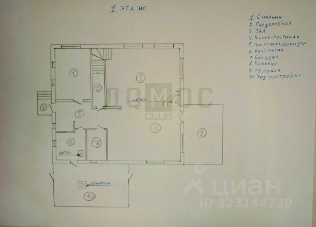На участке расположены: дом, баня, теплица, бассейн, а также плодовые и декоративные деревья и кустарники.