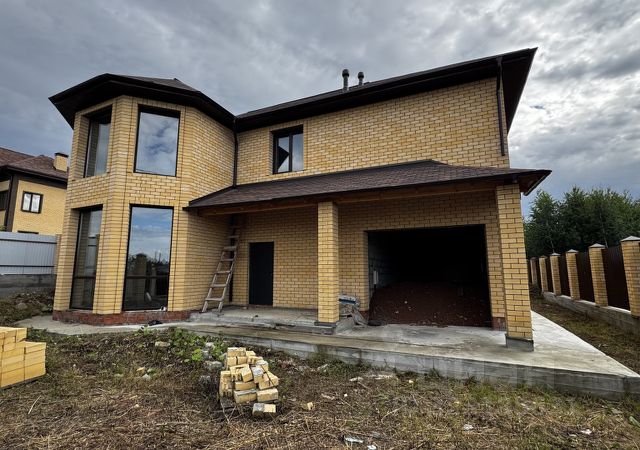 Дом построен по индивидуальному проекту, фундамент ленточный на бурозаливных сваях, перекрытия все железобетонные, стены из газобетонного блока 300мм и кирпича. Комнаты: большая кухня - гостиная (80кв.м.), гостевая комната, три спальни, кабинет, два санузла, котельная, гараж на две машины.
