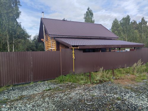 - Места под парковку, на участке двое ворот (распашные и откатные). Забор по периметру.