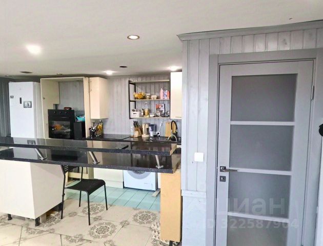 Площадь 90 м2, прихожая, гостиная с обеденной зоной и кухней, сан. узел с душевой кабиной, кладовка, большая спальная, стены гипсокартон окрашенные, пол натуральная доска камерной сушки 50мм ( обработана финской краской на лаковой основе).
