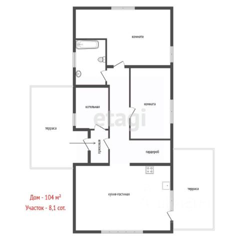 Площадь основного (отапливаемого) дома 248,8 кв.м., общая площадь с учетом гаража и др. помещений около 420 кв.м. Кухня 18 кв.м, гостиная 27 кв.м., 3 спальни, 2 детские, кабинет, 3 удобных с/у с окнами (2 с ваннами), 2 гардеробные, котельная, веранды.