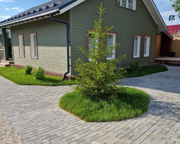 • Мощёный двор из тротуарной плитки чисто в любую погоду