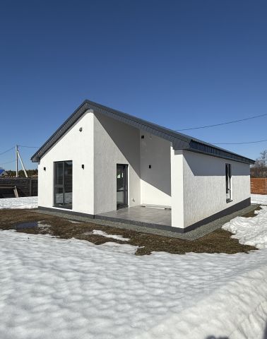 88 кв.м под чистовую отделку, каркас из сухого дерева, утеплитель стен 200 мм, фундамент свайный, кровля металлочерепица, крыша и пол утеплены, дом рассчитан на круглогодичное проживание. В доме 3 спальни, кухня-гостиная 25,6 кв.м. Вход в котельную отдельный. Терраса, балкон.
