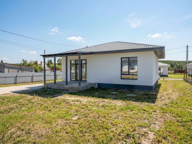 Описание дома • Современный 1-этажный коттедж в пригороде Екатеринбурга • Расположен на ровном земельном участке у соснового леса и реки • Проект Зеленая пристань с жилой площадью 98 кв метров и большой крытой террасой Конструкция и материалы • Несущие стены из ТВИНБЛОКа, межкомнатные стены из ТВИНБЛОКа и железобетонная плита перекрытия пола • В доме 9 помещений: 4 жилые комнаты, гостиная с кухонной зоной, 3 спальни, санузел, котельная с функцией 2-го сан узла, прихожая, коридор, крытая терраса, крыльцо Вентиляция и водоснабжение • Каждое помещение имеет автономную вентиляционную систему !!! • Ванная с сантехникой и разводкой под стиральную машину • Котельная с импортным электрическим котлом, скважиной, автономной станцией водоснабжения, бойлером Отделка и отопление • Отделка под ключ с использованием современных материалов: натяжные потолки, керамогранит, пластиковые окна, стальная сейф-дверь на входе • Во всём доме энергоэфефктивные теплые полы, отопление водяное от электрокотла, в посёлке есть газ Расположение и удобства • Окна расположены на юг, восток и запад, что обеспечивает естественное освещение весь день • В кухне-гостиной панорамное окно с выходом на террасу и во двор • Удачное расположение спален с видом на восход и закат Инфраструктура и документы • В шаговой доступности продуктовый магазин, остановка автобуса, в поселке есть школа, садик, промышленные магазины и даже заправка ГСМ • Дом и земельный участок оформлены в собственность на Застройщика, один собственник, без обременений и долгов • Документы к продаже готовы, оперативный показ, ипотека любого банка, любая программа