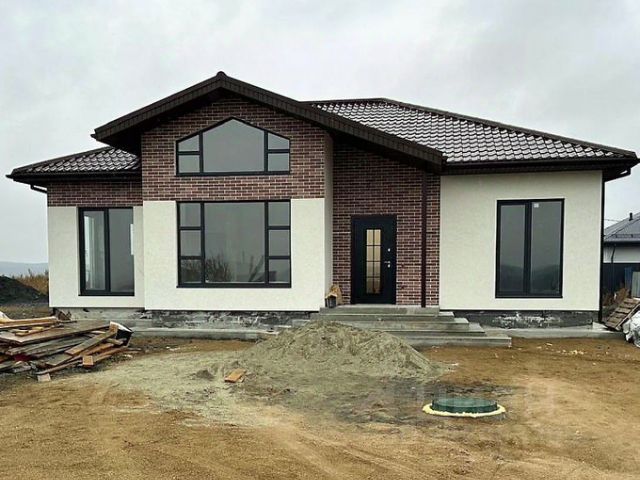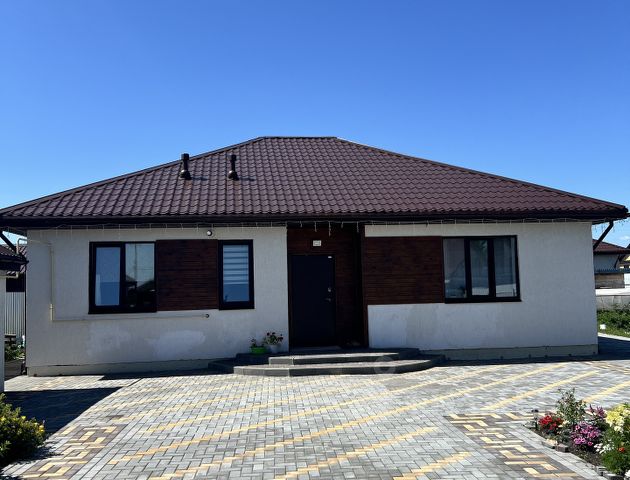 Завораживающая планировка — дом площадью 145 м2 одноэтажный со вторым светом и высотой потолков в гостиной 5,5 метров, огромные панорамные окна, большая кухонная зона, три спальни, включая мастер спальню с гардеробной и собственным сан узлом, вместительная котельная-постирочная, крытая терраса.