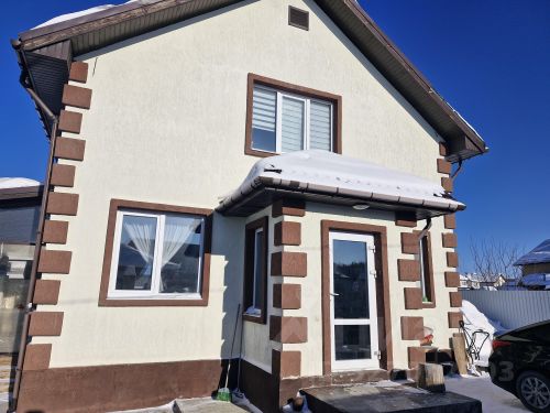 Фасад комбинированный: декоративная штукатурка, термообработанная древесина, планкен
