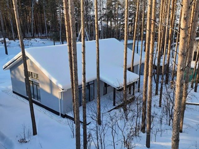 Готовый дом с высоким потолком в гостиной и панорамным видом на осенний лес. Расположен на угловом участке, а значит у вас будет всего два соседа и есть возможность организовать заезд с двух сторон. Дом гармонично вписался в лесной массив, на участке растут вековые сосны. Посёлок газифицирован, газовая труба проведена подземным способом прямо в дом. На участке хватит места для строительства бани или зоны отдыха с купелью на дровах. По задней границе уже имеется забор, а перед домом отсыпана парковка. Архитектурное решение дома воплощает современный минимализм в благородной серой гамме. Цветовая концепция построена на гармоничном сочетании оттенков: светлый фасад, тёмно-серая кровля, графитовые акценты окон и цоколя. Архитектурные элементы: декоративный камень в отделке фасада, контрастные белые детали кровли и водосточной системы. Защищает фундамент здания бетонная отмостка. Терраса выполнена с применением натуральной древесины, частично интегрирована под основную кровлю здания, такое решение комфортно для использования в любую погоду. Продуманная организация жилого пространства создаёт идеальные условия для комфортной жизни современной семьи. Тёплый тамбур-прихожая защищает от внешних температур, а удобный доступ к котельной позволяет контролировать системы жизнеобеспечения дома. Просторный холл с нишей под большой шкаф, куда уместится вся верхняя одежда вашей большой семьи. Гостевой санузел при входе будет удобен в повседневной жизни. Также в доме есть основной сан.узел, где установлены ванная и душевая. Коридор разделяет пространство на две зоны при этом имеет нишу под ещё один шкаф длиной 3,5 метра. Приватная зона — это три спальни, где каждый член семьи найдёт свой уголок спокойствия и умиротворения. Здесь можно почитать любимую книгу перед сном, поработать в тишине или просто отдохнуть от дневных забот. В хозяйской спальне есть ниша под шкаф и собственный выход на террасу с навесом. Общественная зона станет сердцем дома, где будет собираться вся семья. Просторная кухня-гостиная с потолком 4 метра высотой и панорамными окнами создаёт ощущение безграничного пространства. В этой светлой гостиной легко уместится большая П-образная кухня с мойкой напротив окна, большой обеденный стол, где будет собираться вся семья, войдёт огромный диван и даже есть место под камин. Из гостиной есть выход на террасу, которая станет любимым местом для семейных посиделок: утренний кофе под пение птиц, вечерние чаепития при закате, барбекю с друзьями. Вся необходимая инфраструктура в шаговой доступности: на въезде в коттеджный посёлок "Резиденция" есть магазин "Магнит", всего в 3 минутах от дома находится "Пятерочка", а также остановка общественного транспорта. В 5 минутах от дома расположен большой государственный детский сад. Ваши дети будут в безопасности, ведь школьный автобус курсирует по расписанию и доставляет их в соседний посёлок Октябрьский. Посёлок "Резиденция" уже завоевал популярность среди тех, кто ценит комфорт, уют и близость к природе. Удобная автомобильная развязка позволит вам с легкостью добираться до города, не теряя при этом связи с великолепием природы. Осень — идеальное время для новых начинаний. Станьте владельцем этого прекрасного дома. Звоните.
