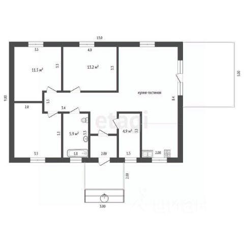 -крыльцо на входе 6,4м2.