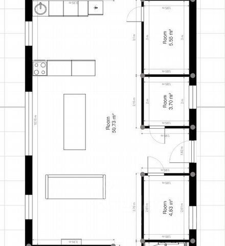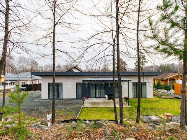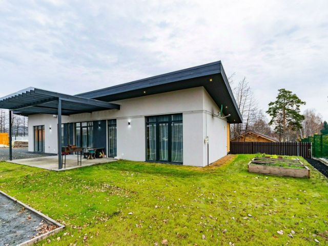 Площадь дома: 85 м², крыльцо 7,9 м². Площадь участка: 10 сот. Количество комнат: 3 спальни (10,2, 13,6, 11,1 м²), просторная гостиная (21,9 м²) с панорамным окном, кухня, санузел, прихожая, котельная, теплые полы. Установлена сигнализация.