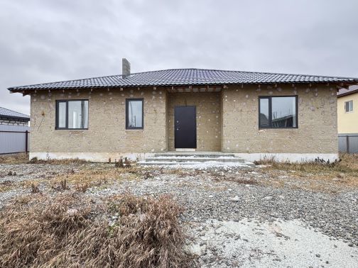 Фундамент - буронабивные сваи около 50шт+ростверк+монолитная плита, армопояс ж/б, стены газоблок с утеплением 110, мягкая кровля с утеплением и отличной шумоизоляцией - дождь не слышно вообще, зимой очень тепло - котел зимой включаем максимум на 40 градусов ночью, днем 30-35, отопление тёплый пол + радиаторы, залита отмостка, проведен интернет(ни разу не было проблем), высокие потолки