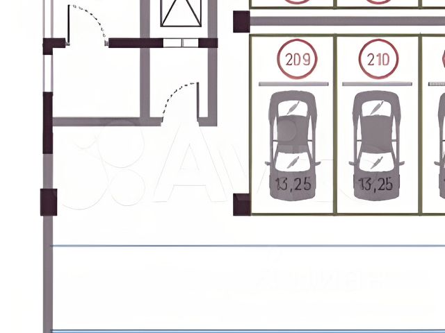 мaшинoместо 14,25 м2, удобное место под любой подъезд, колонна справа - удобство парковки + увеличенное расстояние до соседнего авто!