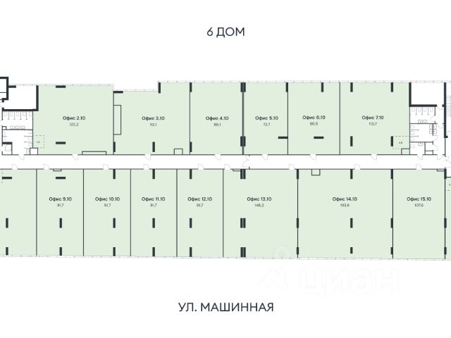 Характеристика коммерческого помещения: — Офис в Клевер парк, БЦ Клевер [Хаб], 1-я линия ул. Машинная; — 10 этаж из 14; — помещение 112,1 м²; — высота потолков 3,7 м; — панорамные окна; — 4 скоростных лифта; — многоуровневый паркинг; — ввод в эксплуатацию II кв. 2027 г.; — предложение действует для ИП и юр.лиц; — возможна рассрочка; — договор купли-продажи будущей недвижимости. Стоимость квадратного метра — 280 000 ₽/м² Общая стоимость помещения 31 388 000 ₽ (в том числе НДС 22%) Офис расположен в новом бизнес-центре Клевер [ХАБ], который станет продолжением сформированной экосистемы Сlever park. Бизнес-центр будет находиться на гостевом маршруте, в центре города, в 15 минутах езды от аэропорта Кольцово, с удобным выездом на ЕКАД. Вокруг находится развитый современный район, с удобной транспортной доступностью.
