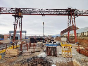 Изолированный от остальных действующие пролеты со своими воротами и.с рабочими кранами.