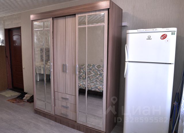 В комнате свежий косметический ремонт. Дверь в комнату качественная, железная. Окно пластиковое. Натяжной потолок, со встроенными светильниками, на полу линолеум. Огорожено место под прихожую - гардероб. Вся мебель в комнате остаётся покупателям.