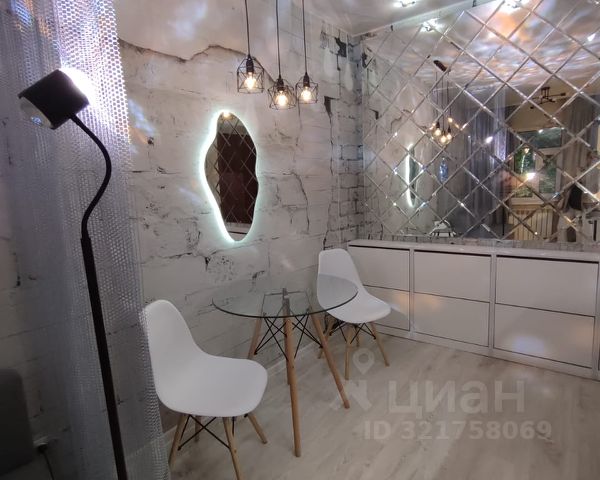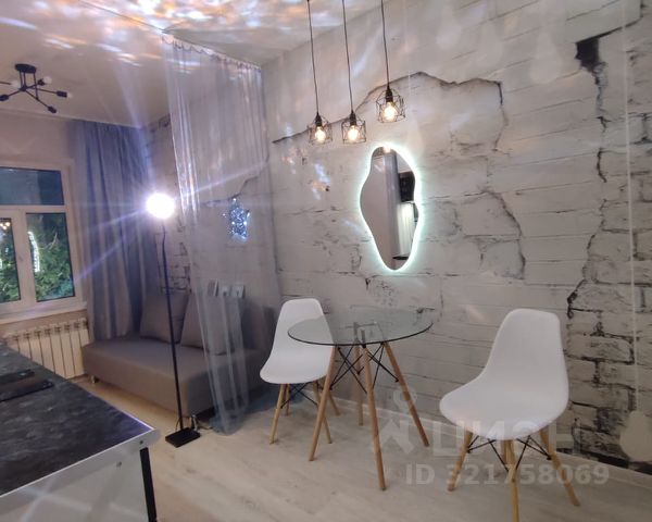 Предложение от собственника! Продаётся замечательная комната-студия в стиле лофт! Уникальный дизайнерский ремонт. Изящные подвесные светильники, несколько вариантов подсветки, парящее зеркало над обеденным столом. Над функциональной зоной хранения установлено большое зеркальное панно, которое дает ощущение пространства. Студия удачно разделена на зону отдыха с комфортной рабочей зоной и зону кухни. Кухонный гарнитур с красивым фартуком эффектно сочетается с фирменной техникой премиум-класса Monsher. Эта студия подойдёт как для личного проживания, так и для выгодной сдачи в аренду. Установлена новая душевая кабина. Стиральная машина находится на кухне. Соседи спокойные и адекватные (всего 2 человека). Бонус покупателю: вся мебель и техника, которую видите на фото входит в стоимость и остается новому владельцу.